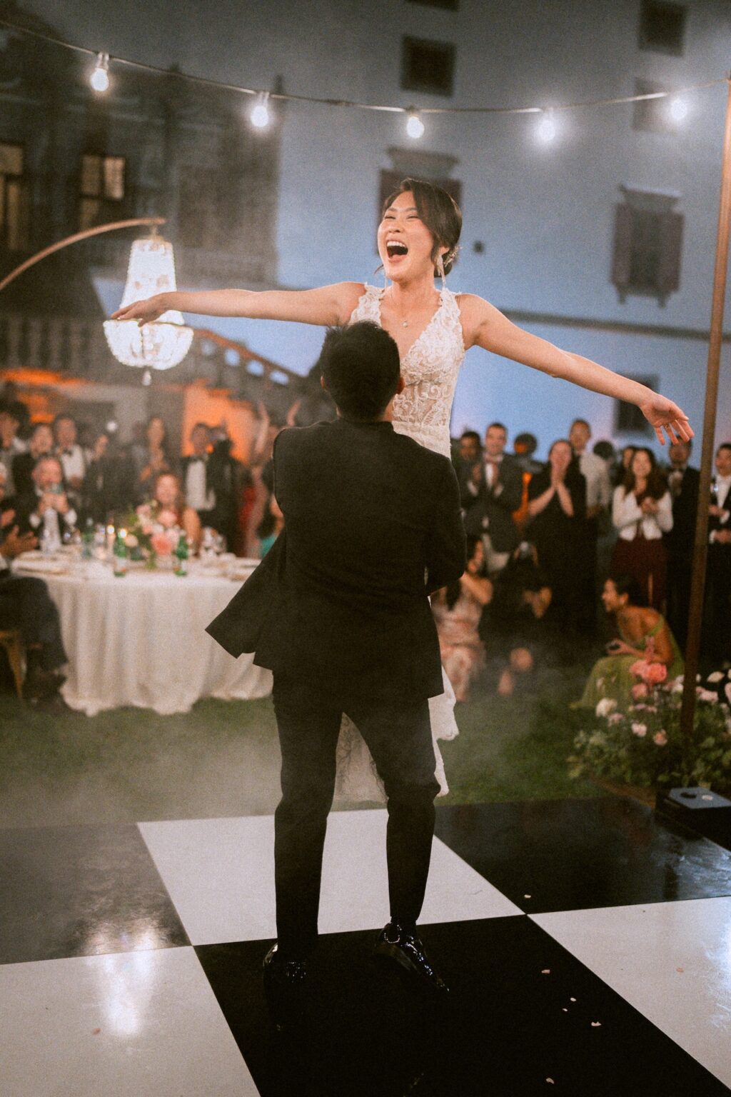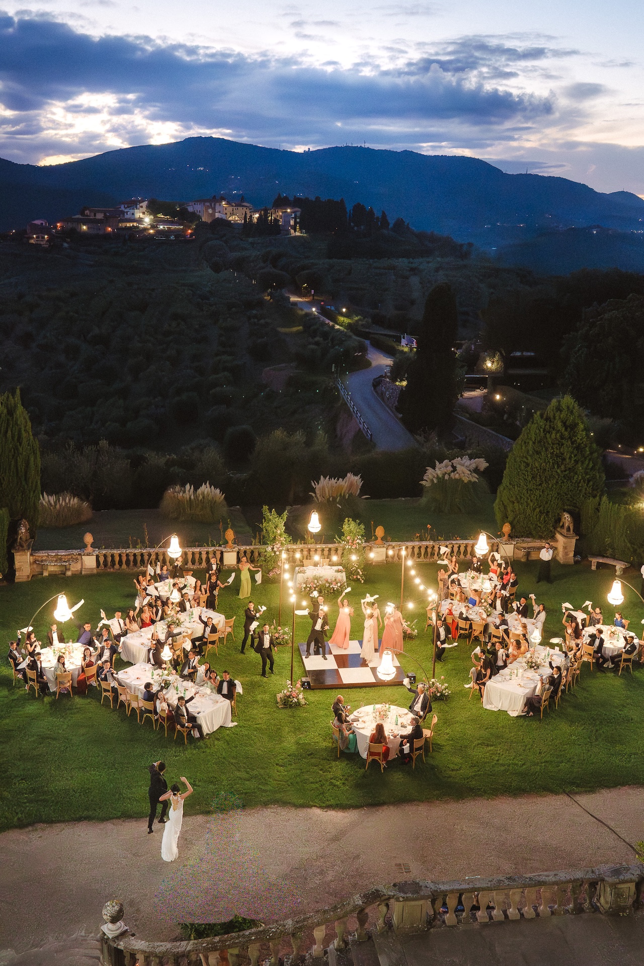 The evening culminated in a vibrant celebration, where music and smiles lit up the Tuscan night. It wasn’t just an Italy destination wedding, but an immersive experience of love and joy, the perfect finale for a love story destined to remain in everyone’s hearts.