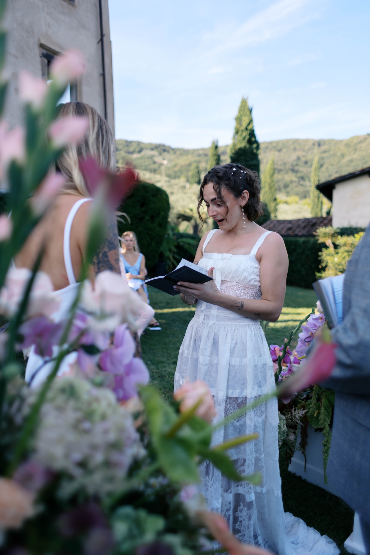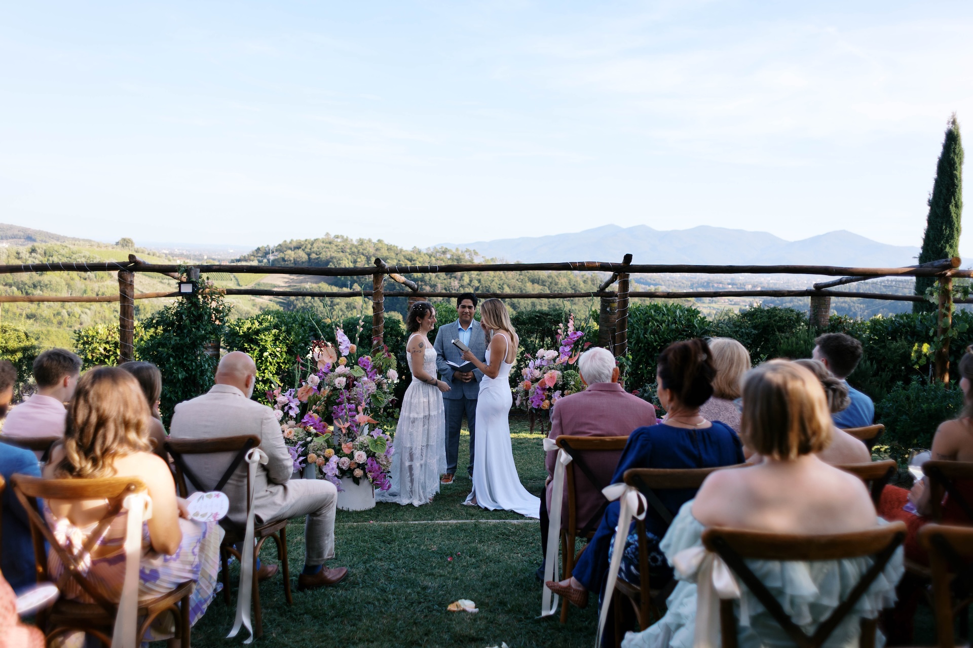 The history and the unique, timeless atmosphere of Villa Barsocchini were the elements that, from the very first glance, captivated the two brides Lauren and Kendall. Choosing one of the most enchanting Tuscany wedding venues was rooted in their dream of creating an intimate and soulful sanctuary, where every detail held deep meaning.