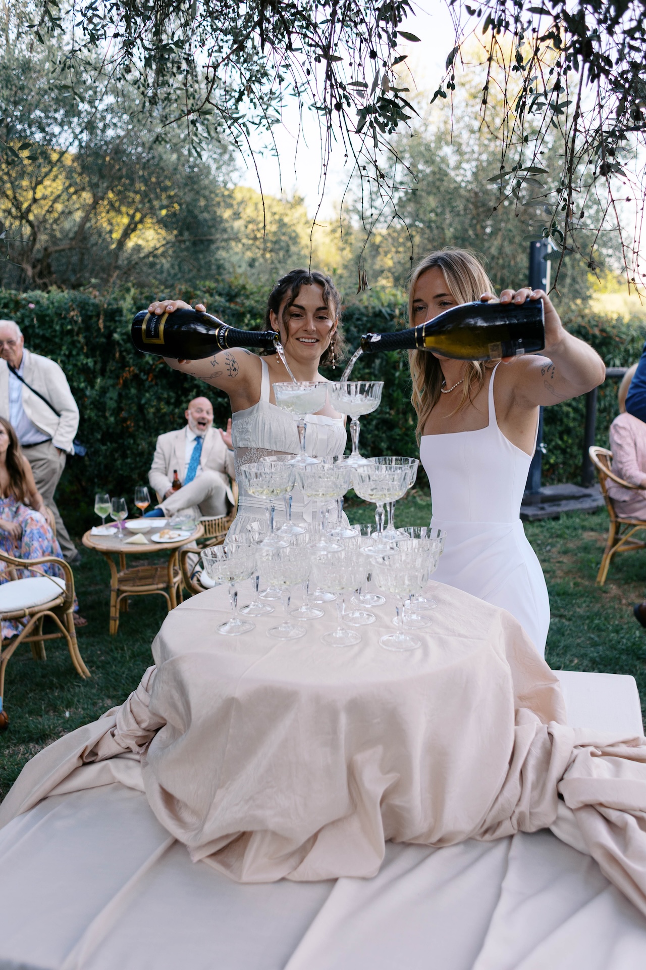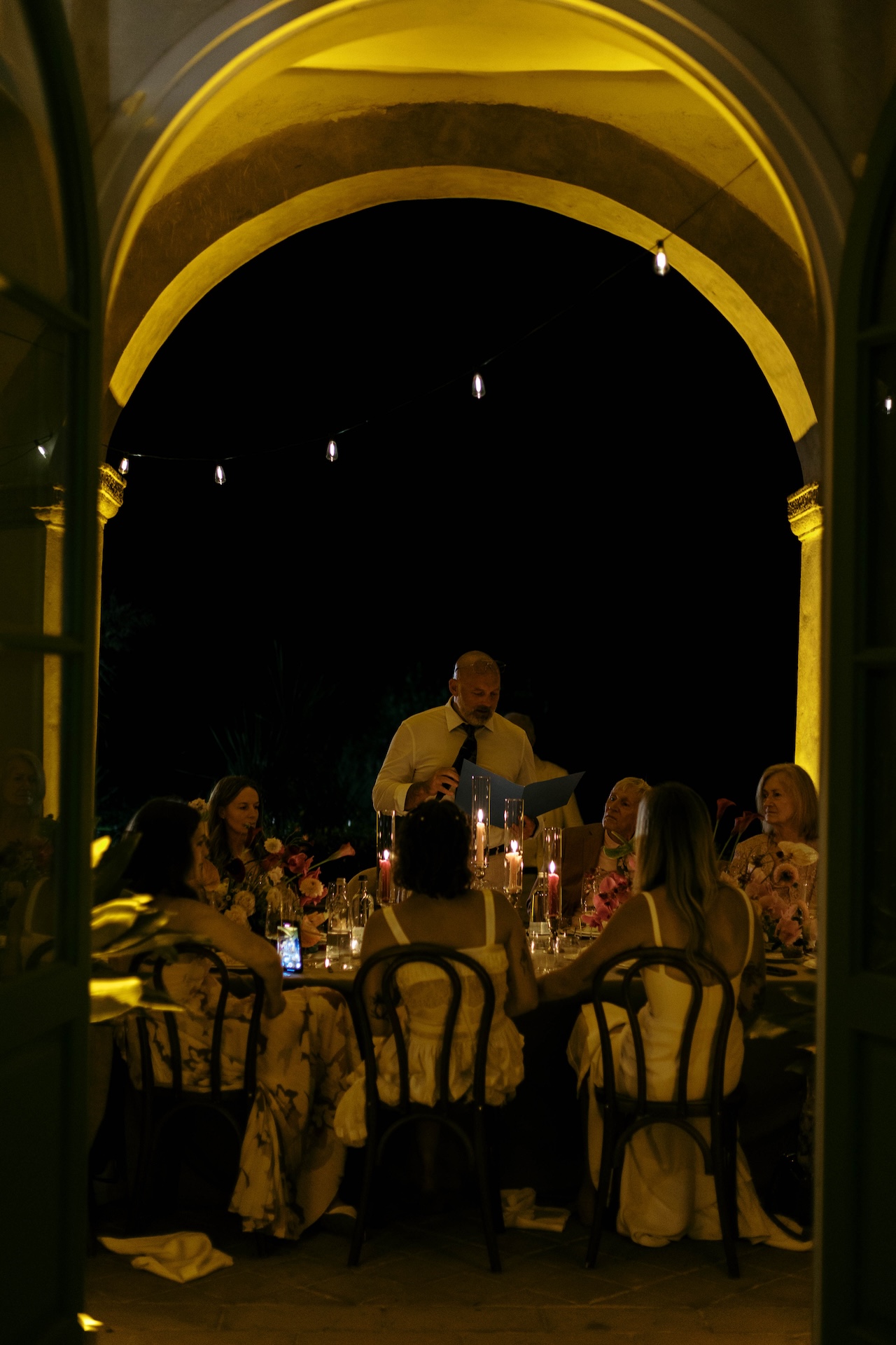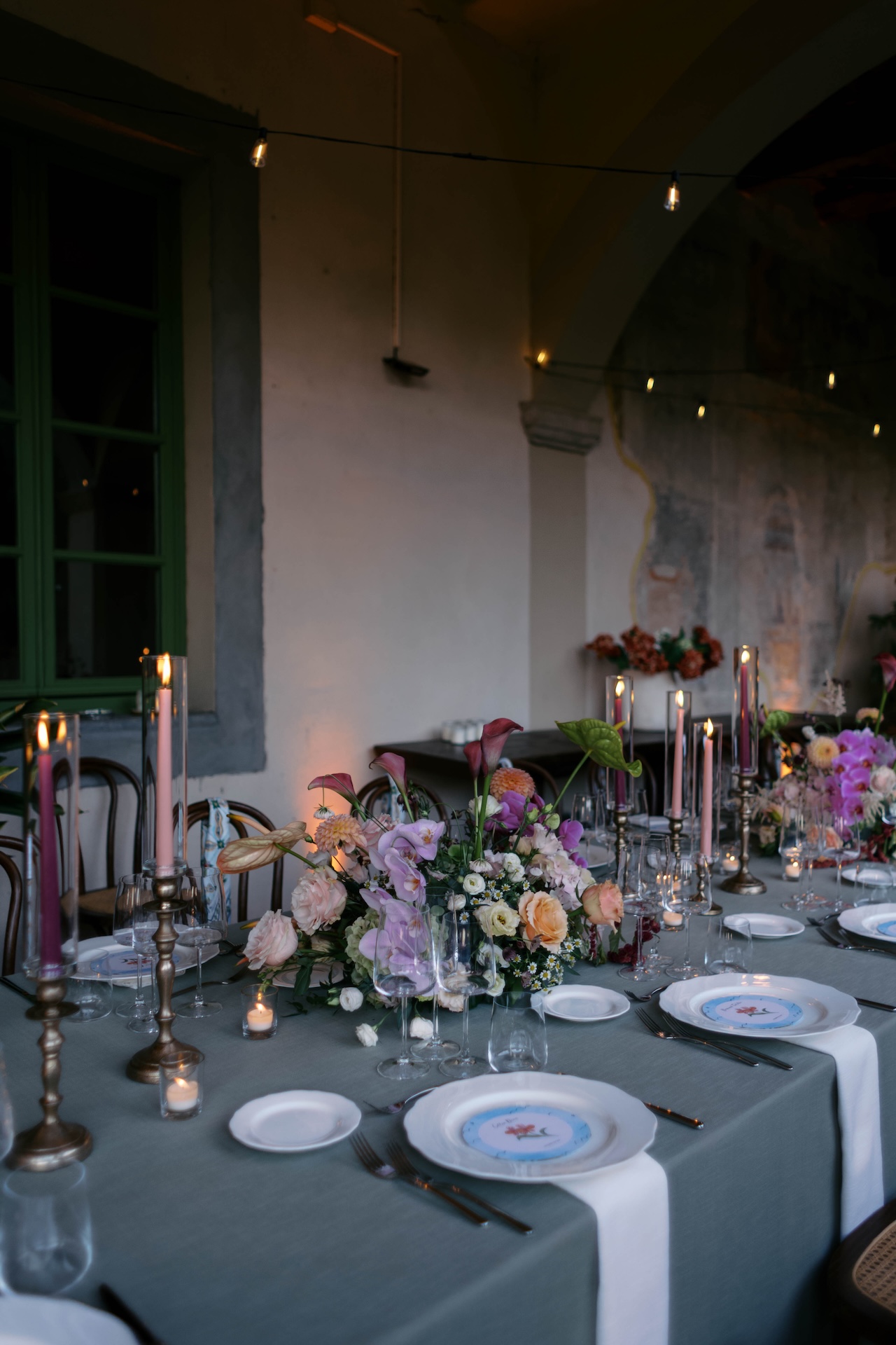 Lauren and Kendall’s post-ceremony celebration was an explosion of pure emotion and contemporary style; we transformed the historic loggias of Villa Barsocchini into an open-air sanctuary, where long imperial tables, flickering candles, and sophisticated floral designs created an intimate, vibrant atmosphere.