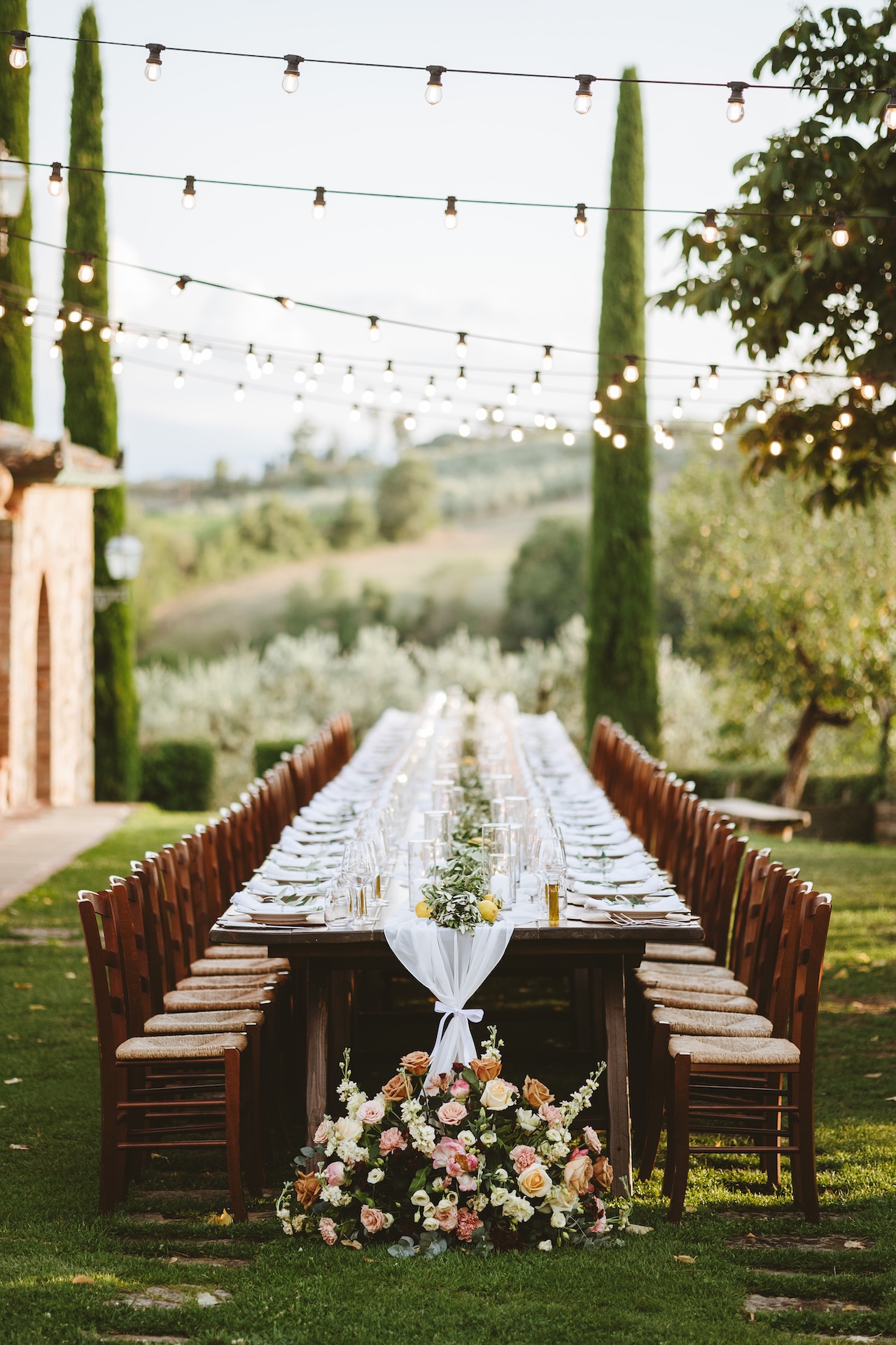To enhance these structures, we incorporate lush wedding floral pieces that follow the table’s geometry, creating a seamless flow between décor and architecture. By playing with unconventional setups, we encourage guests to experience the venue’s beauty from ever-changing perspectives, making every moment of your Italy destination wedding feel dynamic and intentional.